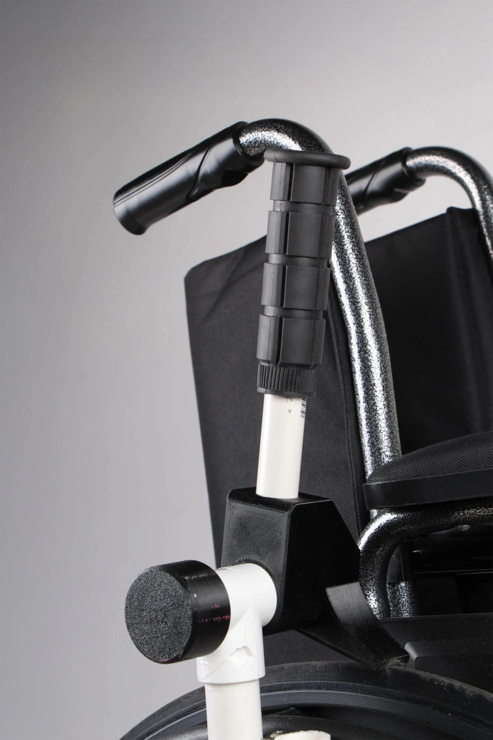 A low cost wheelchair attachment I designed in high school that used 3D printing and hardware store parts to let more people push their own wheelchairs.